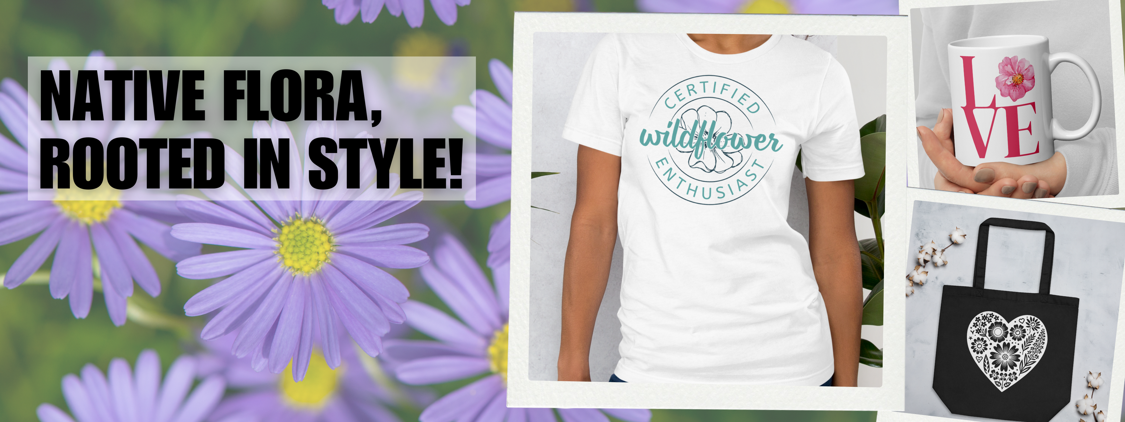 Our products aren’t just products, they’re stories rooted in nature. Each design is unique and inspired by the native plants we grow here on our farm, and printed on demand to reduce waste.